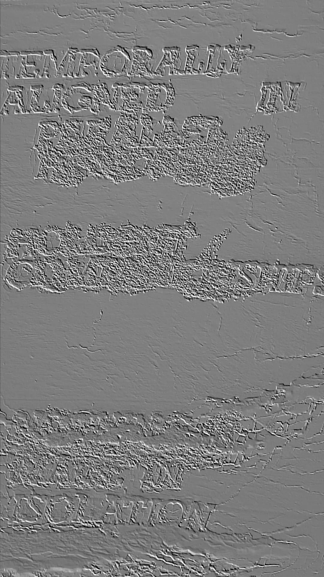 Questions around the sedimentation of information and the decay of facts and figures build the core of this durational multimedia installation. Textual plates fall in disintegrate and merge in a slow manner and are composed together with animated video sequences.