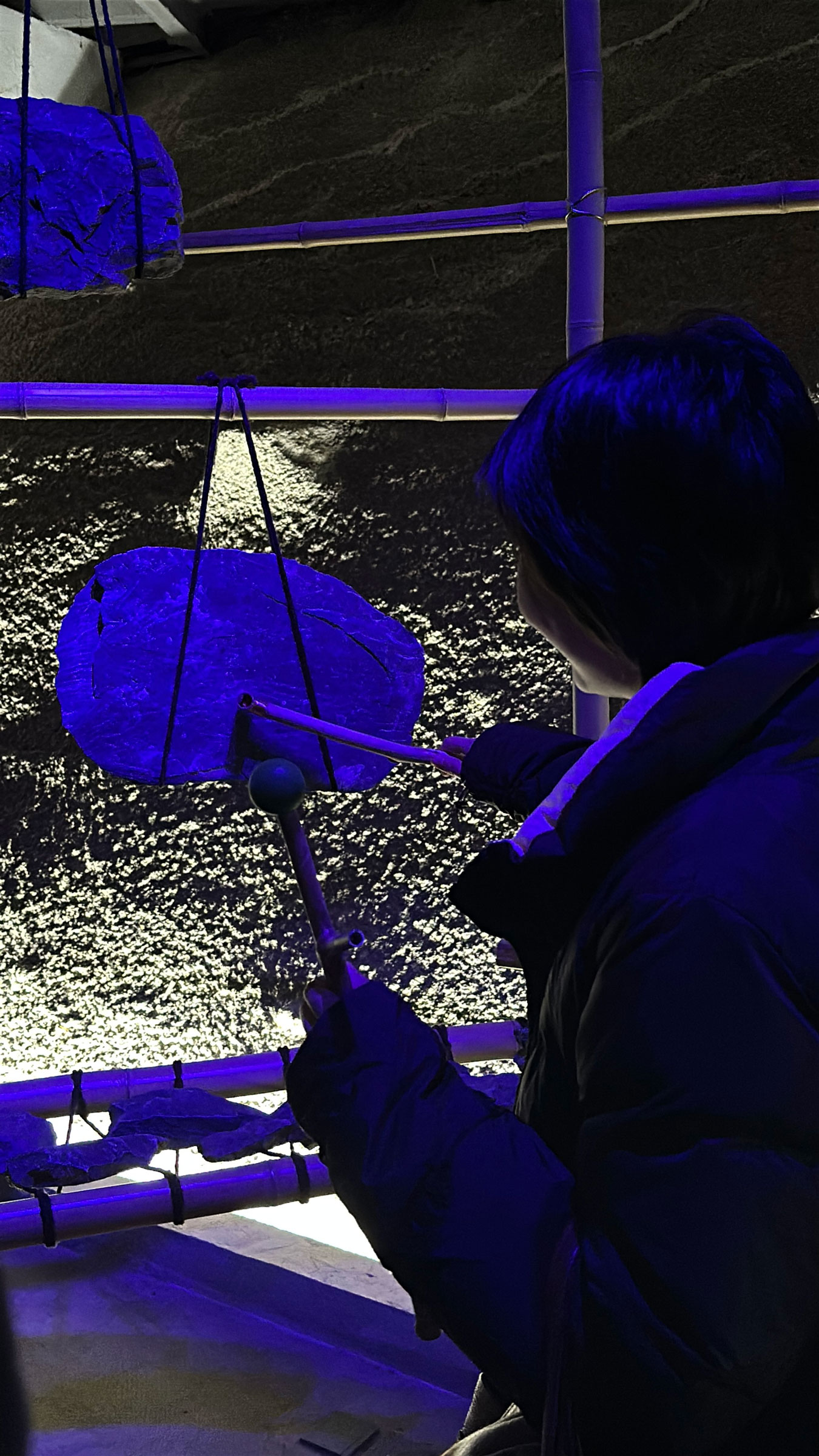 Lithophone made of local minerals of the Purble Mountain Nanjing, bamboo, rope,