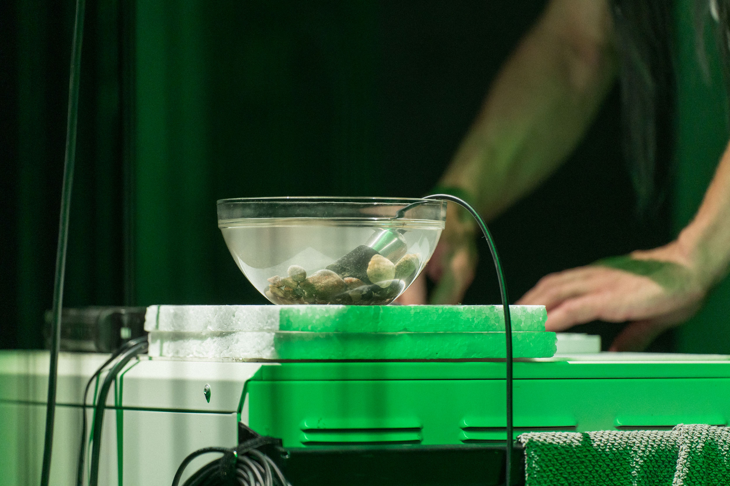 The artists in this edition of Articulations build sensorial, politically provocative structures to reconnect us to the biological machinery which our consciousness still inhabits. Responding to the disused former nightclub in the basement of the Radvila Palace Art Museum, Alina Schmuch and Lithic Alliance examine civic infrastructure, bathing, sonic vibrations and geology through methodical examination and close listening.