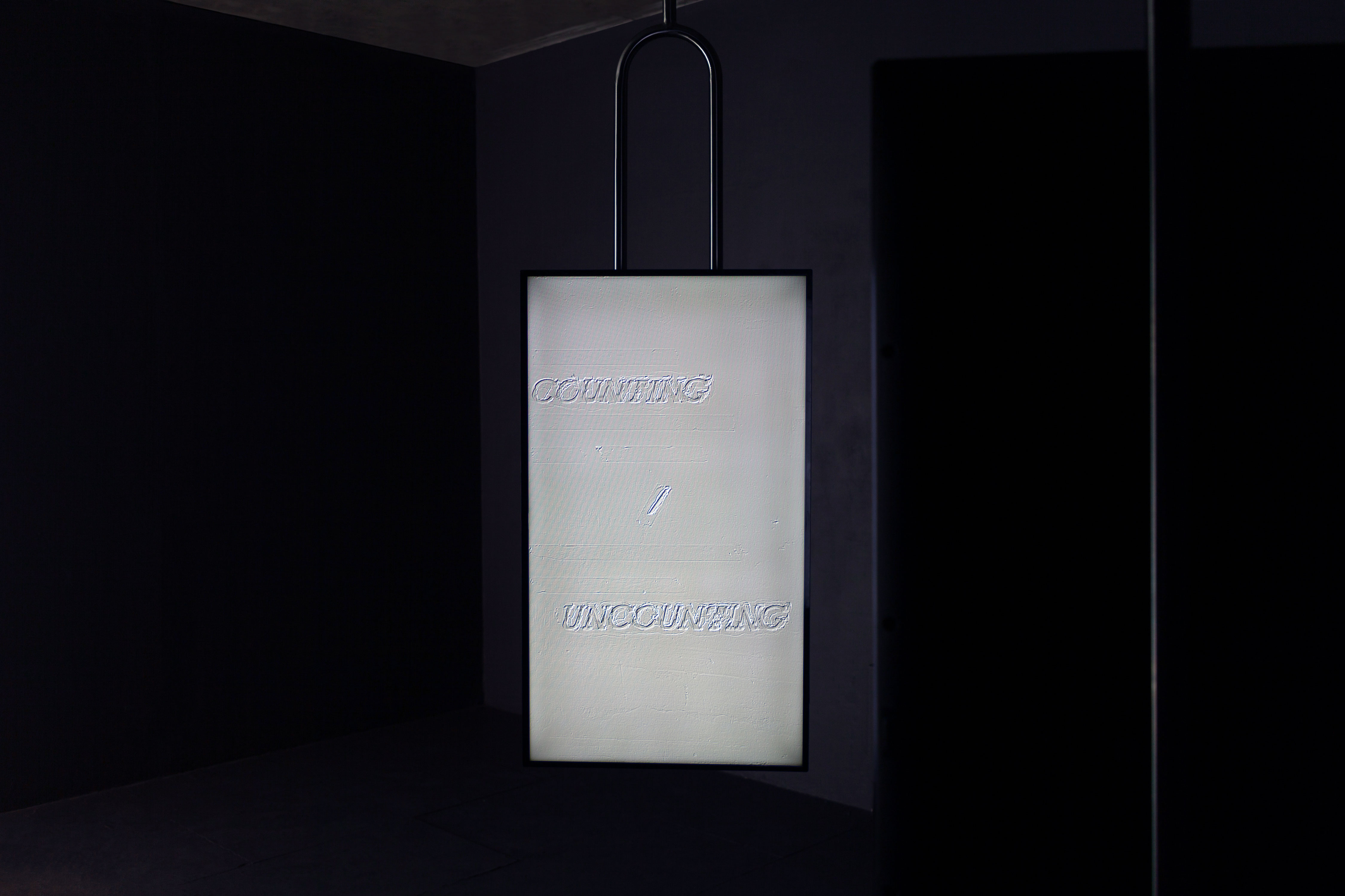 Questions around the sedimentation of information and the decay of facts and figures build the core of this durational multimedia installation. Textual plates fall in disintegrate and merge in a slow manner and are composed together with animated video sequences.