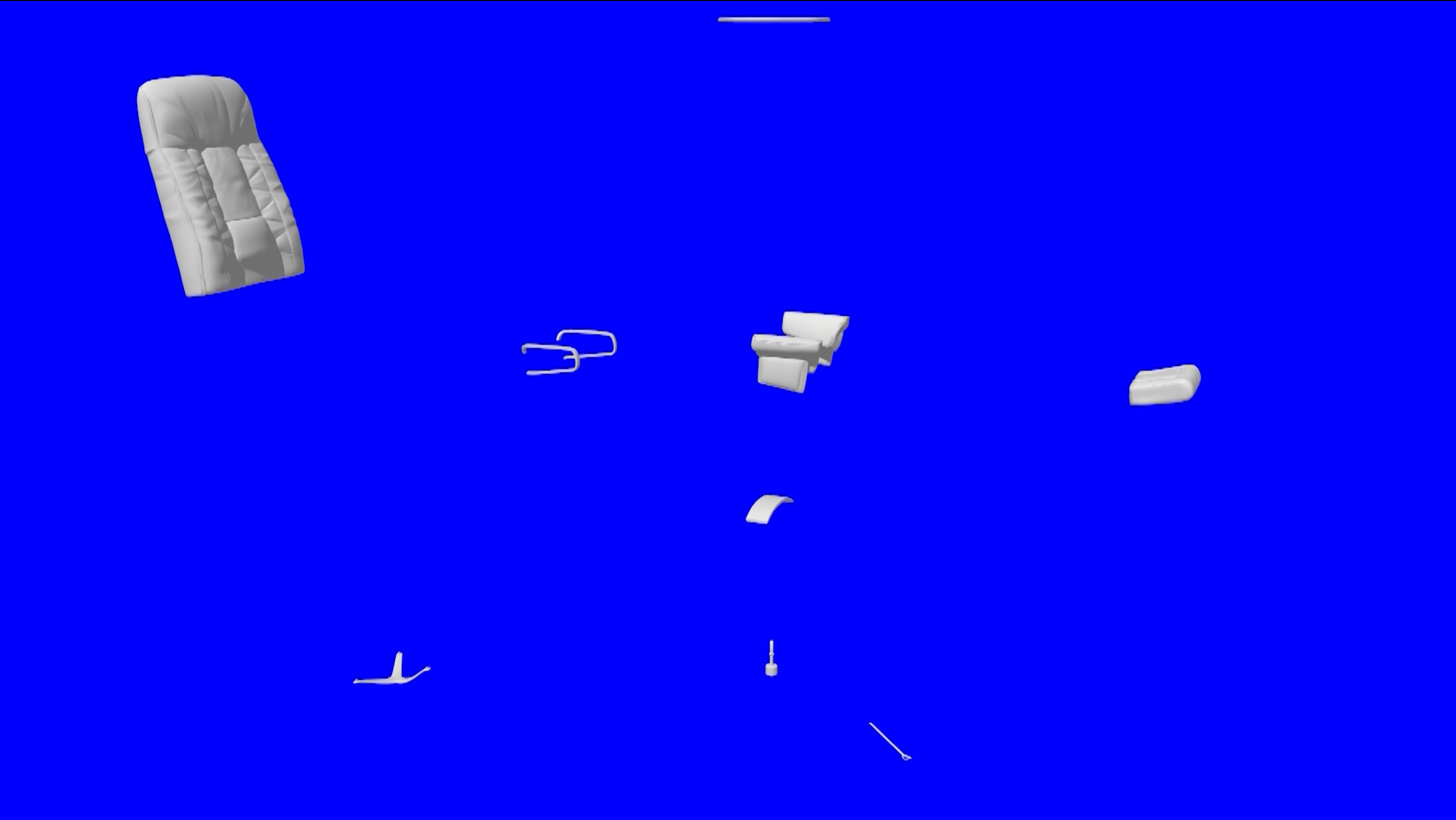In the work Looping Suspense, human interventions in nature are placed in a field of tension with the built environment and made atmospherically perceptible in a spatial arrangement. Set pieces of found media images of detonations in limestone quarries, in which material is mined for concrete production, as well as collapsing high-rise buildings, which have to make way for the construction of new buildings through blasting, are interrupted by digitally generated animations. In explosion-graphic representations, isolated pieces of furniture dissolve into their components and spread out. The effects of global trade and consumption are symbolically illustrated in the decomposition of these objects.