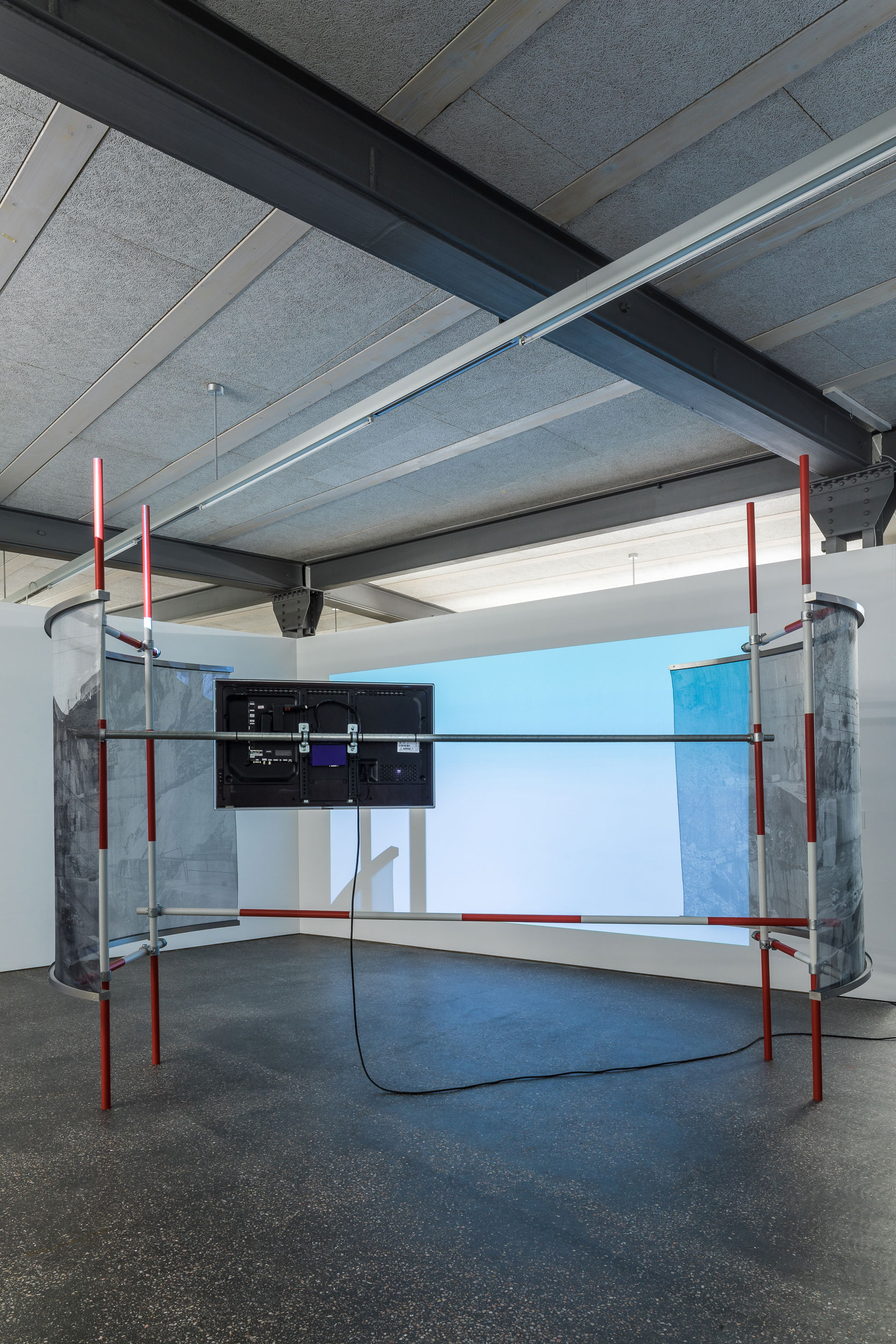 The installation follows mineral traces and explores the question of what remains of a mountain after the intensive extraction of rock. The work is based on video and image recordings from the Carrara quarries in Italy. Stone dust particles in the air after darkening become visible through the sensitivity of the camera and reveal a kind of ghostly remnant of the quarried mountains.