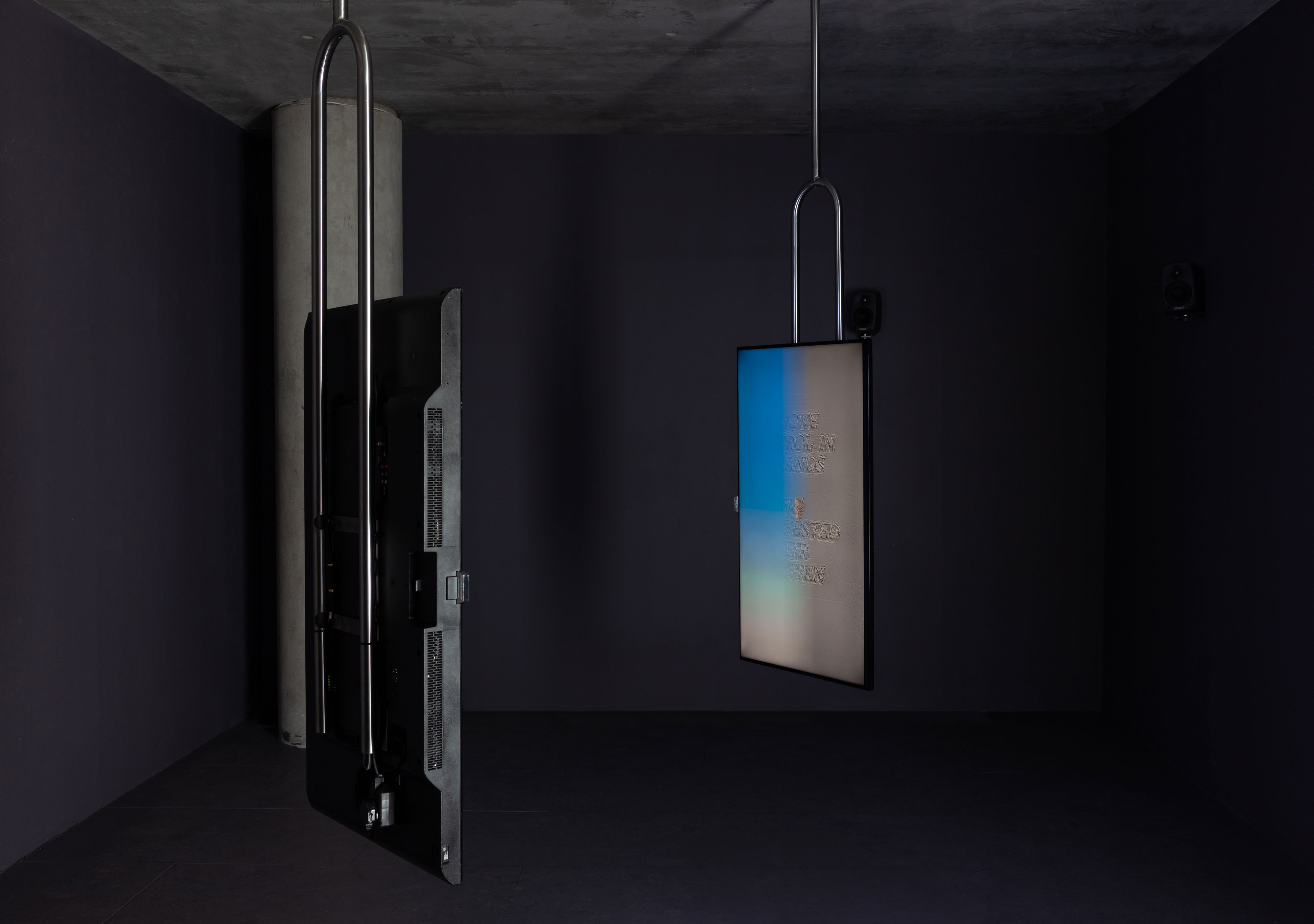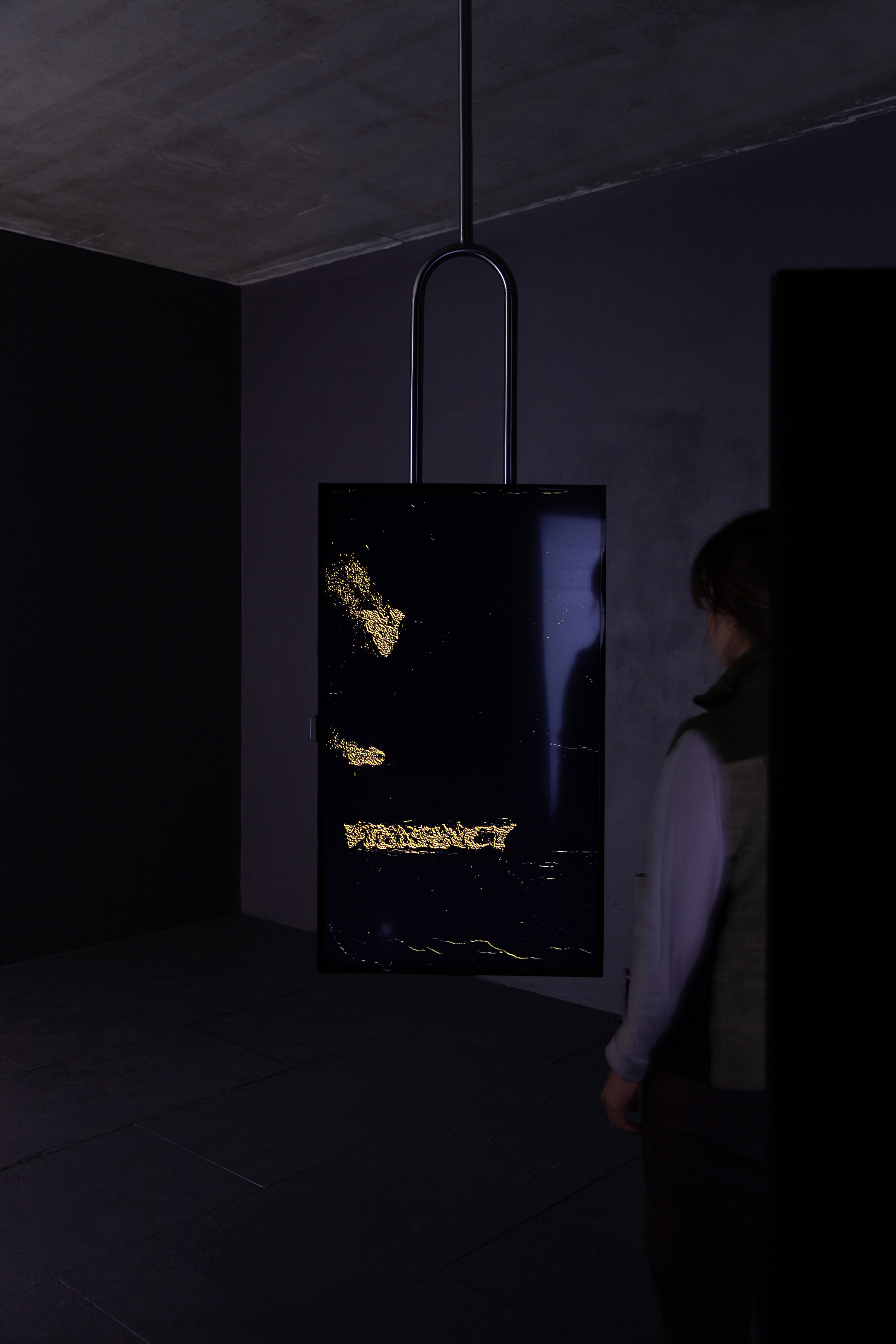 Questions around the sedimentation of information and the decay of facts and figures build the core of this durational multimedia installation. Textual plates fall in disintegrate and merge in a slow manner and are composed together with animated video sequences.