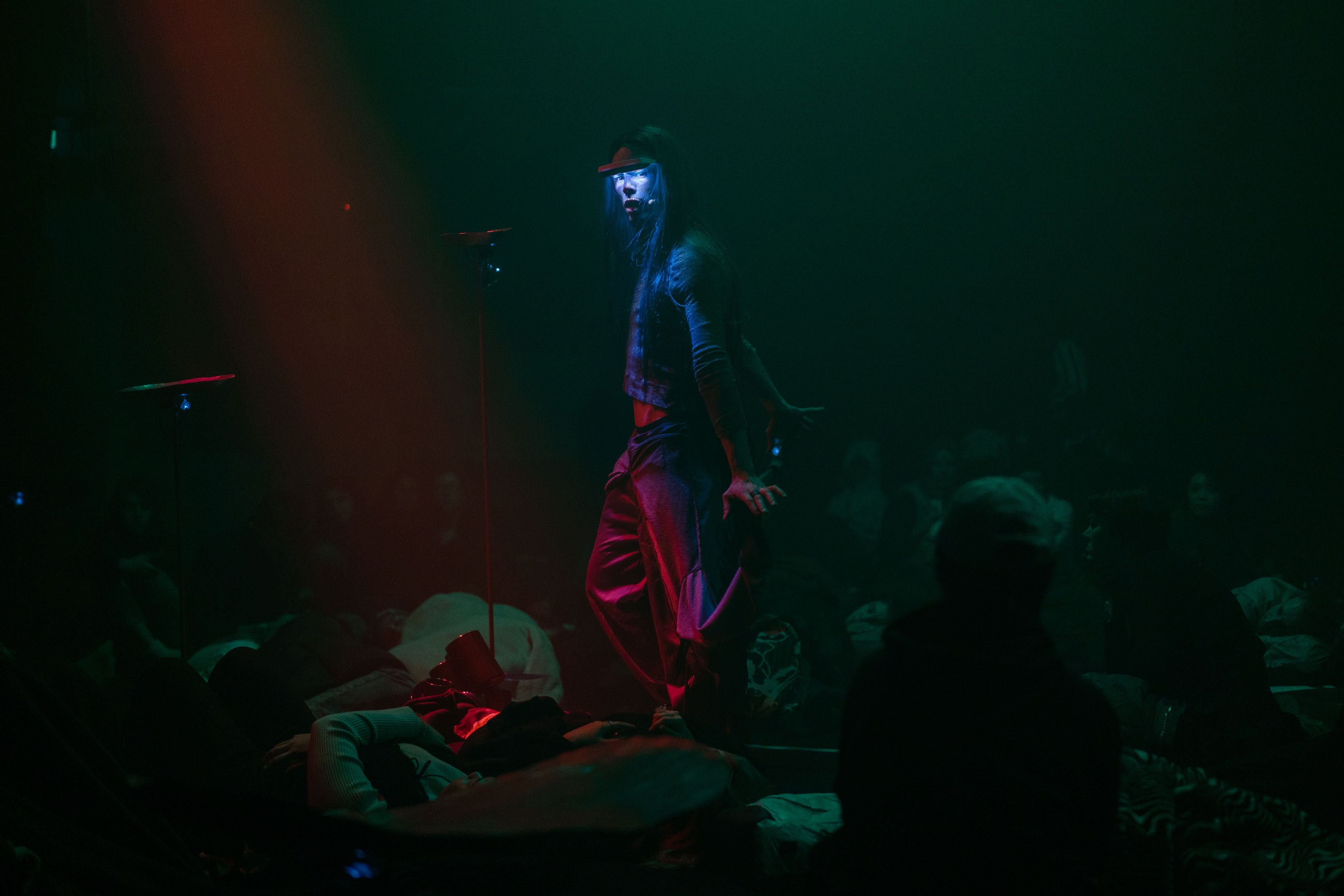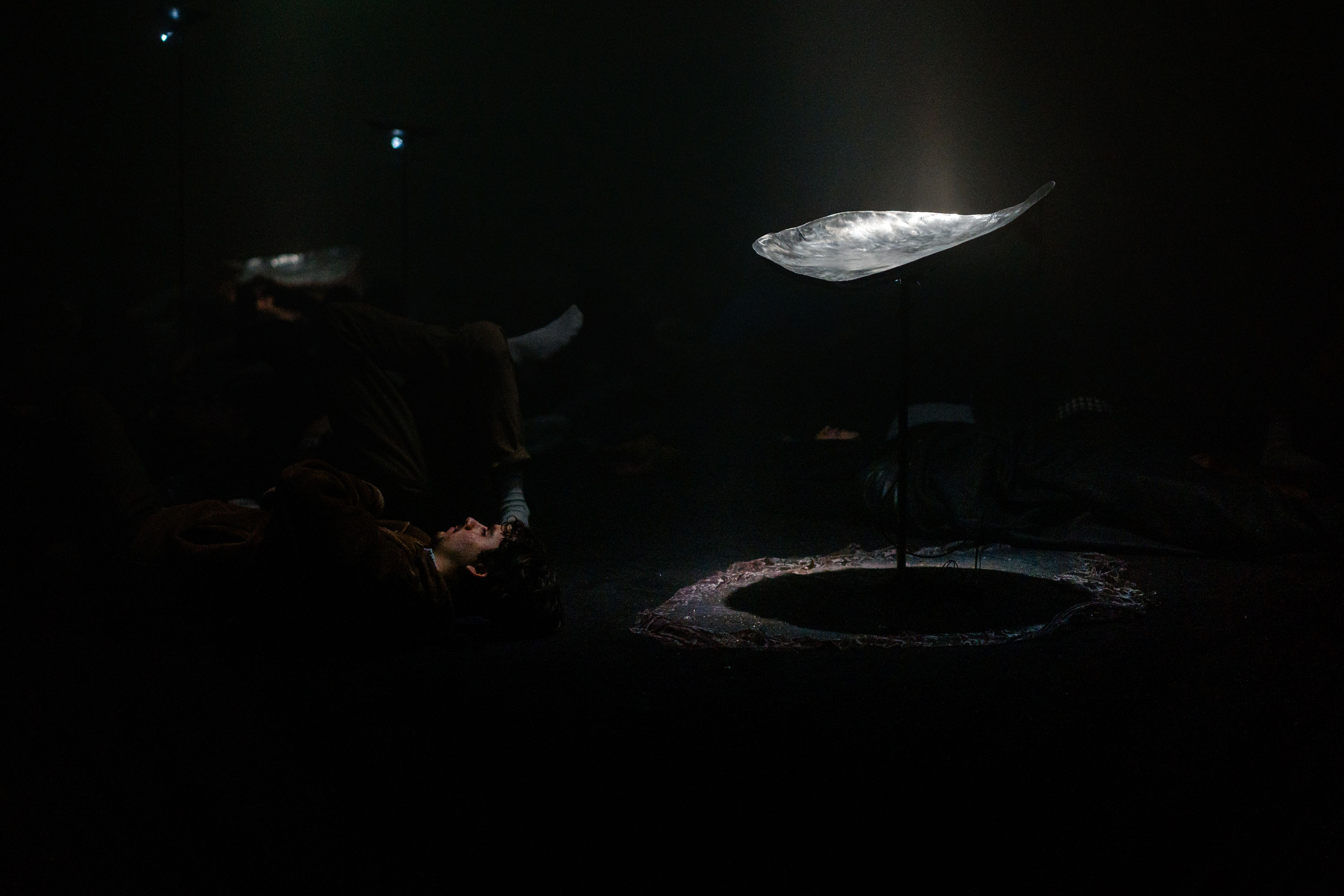Through light, darkness, music and sound, Here explores the idea of falling as it relates to sleep, love and physics. The project invites audiences to partake in collective listening – tuning into the ‘frequencies’ of falling and being held by its transient potential. Through the communality of this auditory and spacial experience, participants can empathically co-create a new, shared ‘here’.